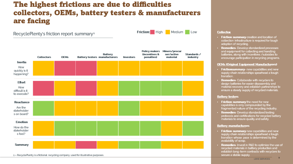 With all her functional leads participating, they found that the collectors, OEMs, Battery testers, and battery manufacturers saw the most friction due to how quickly they are expected to develop these new capabilities and infrastructure (inertia), and the effort required to accomplish the ramp-up.
